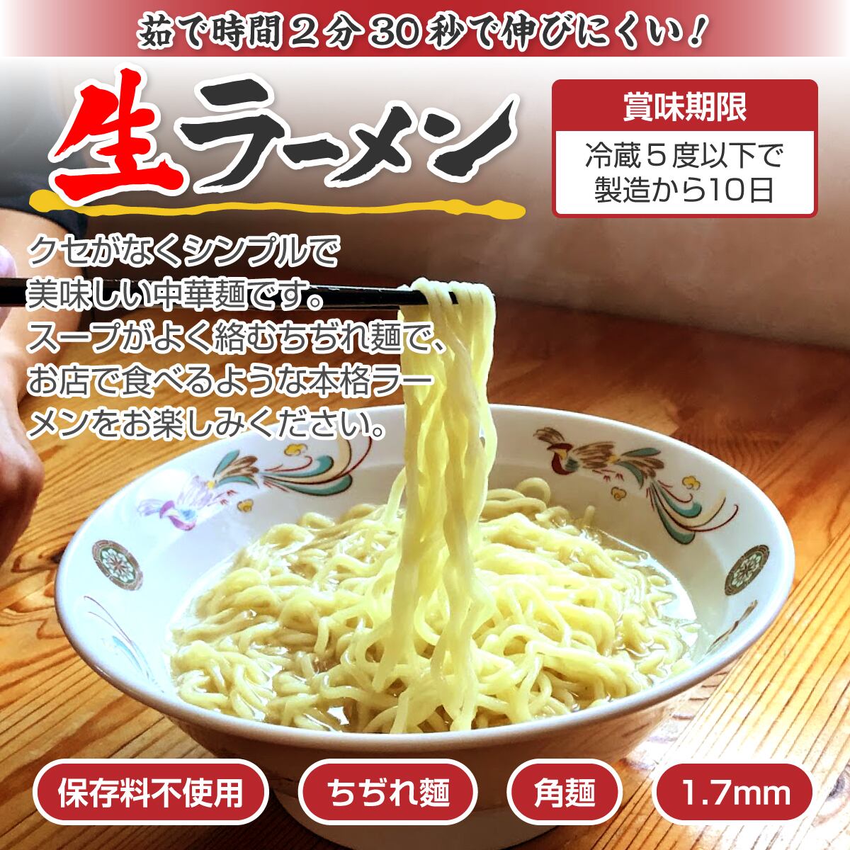・生麺1袋とスープでお届け。しっかりとした食感と風味が感じられ、温かいスープとの相性も抜群です。